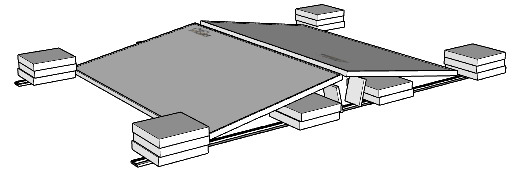 Das Flachdachmontagesystem “K2 Systems S-Dome 6.10” muss nicht angeschraubt werden. Jede einzelne Schiene muss mit 40-50 kg Steinen beschwert werden, damit es auf dem Dach sturmsicher ist. Die Neigung des Dachs darf nicht größer als 5 Grad sein, da das Kraftwerk sonst im Lauf der Jahre langsam verrutschen könnte.