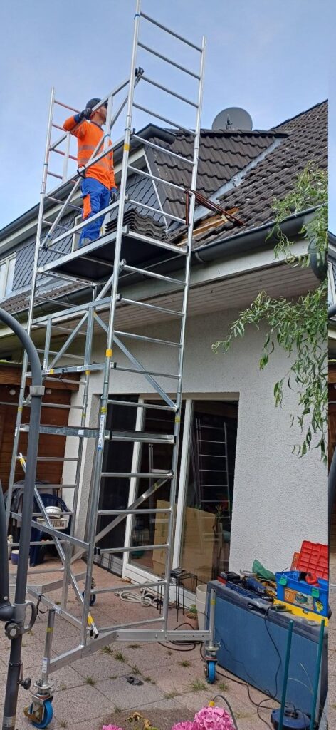 Für die Montage der beiden Module auf dem Dach haben wir ein Gerüst aufgestellt.