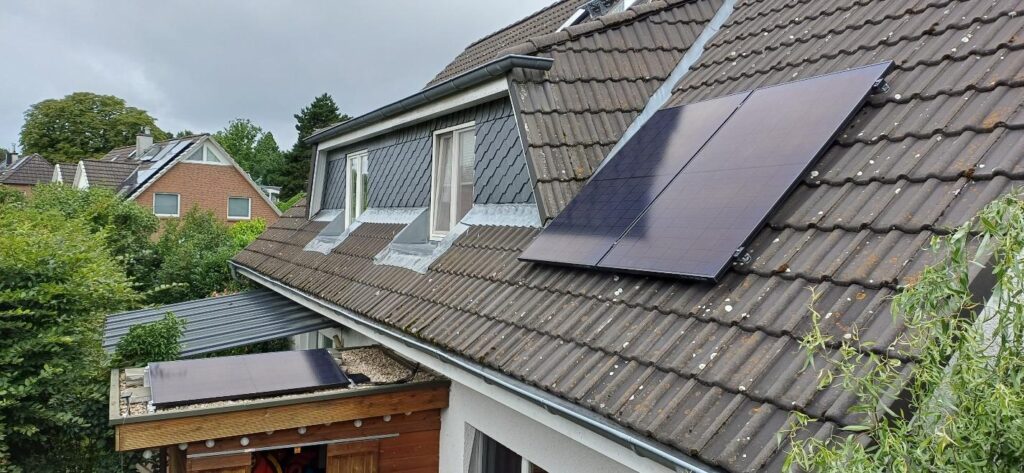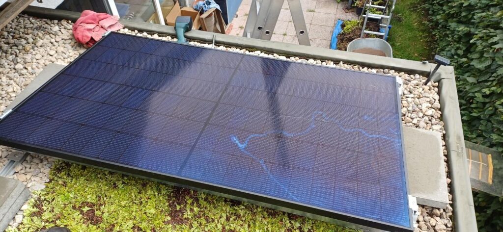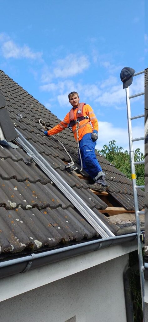 Im August erhielten wir von einem unserer Balkonisten diesen Erfahrungsbericht zur Montage seiner Dachanlage. Die Anlage ist mit Dachhaken Typ Vario2 von k2 Systems für Betonpfannen über sog. k2 Climber und k2 Singlerail Schienen befestigt. Als “Persönliche Schutzausrüstung” PSA bei den Dacharbeiten hatten wir eine Lifebelt-taugliche Schwimmweste und ein stabiles Seil verliehen. Auf dem begrünten Gartendach ist das System S-Dome 6.10 von k2 systems montiert, ohne Bohren nur mit Gewichten sicher beschwert.