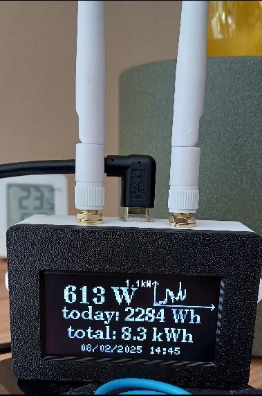 Der Balkonist ist unserer Empfehlung gefolgt und hat den Wechselrichter nicht in der Cloud angemeldet. Stattdessen wurde ein WLAN Messgerät Typ OpenDTU mit komfortablem Display installiert. So werden keine Daten nach China übertragen – und Hackern das Leben schwer gemacht. Hier nun sein Bericht: